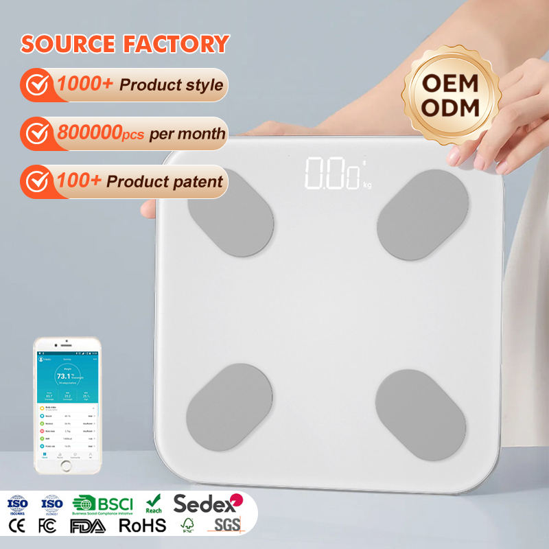 Balance connectée intelligente Bluetooth avec écran LCD numérique de précision 180 kg pour la mesure corporelle et l'analyse de la graisse