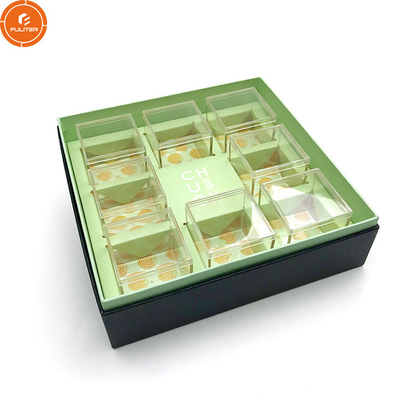 Boîte à bonbons en acrylique, lot de 9 séparateurs de luxe, couleur vert gaufré, en carton, pour eid mubarak, emballage cadeau pour aliments