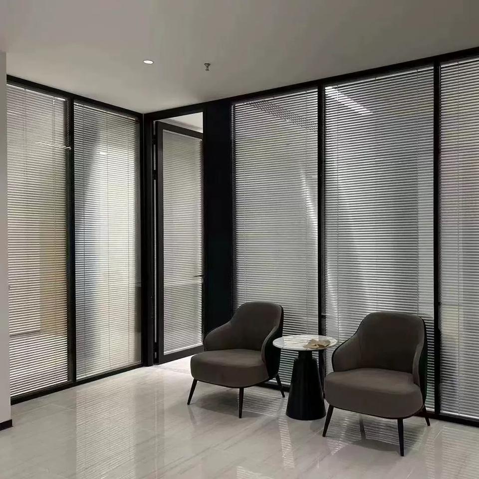Cloison de séparation en verre pour bureau avec cadre en aluminium personnalisable - Cloison modulaire flexible pour extérieur avec design écologique