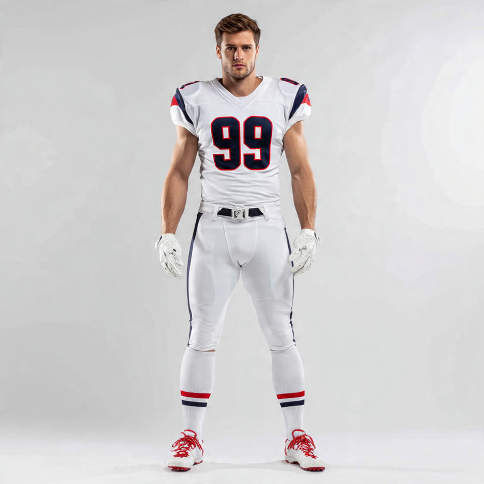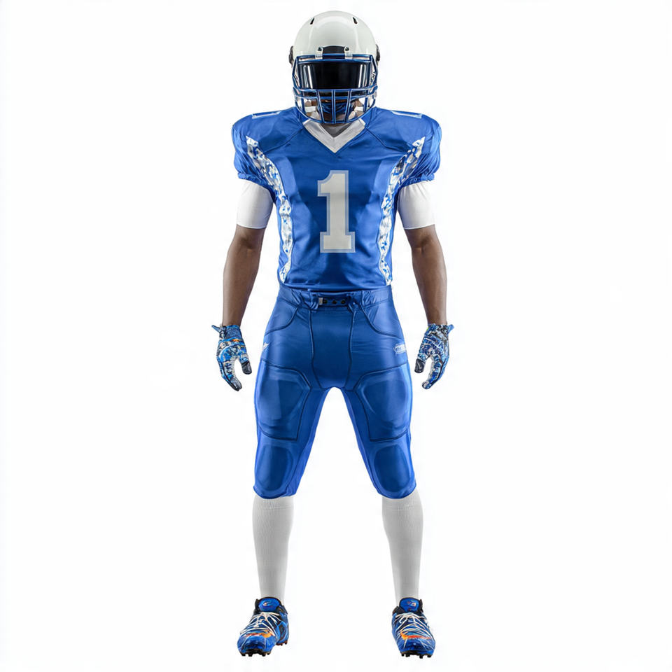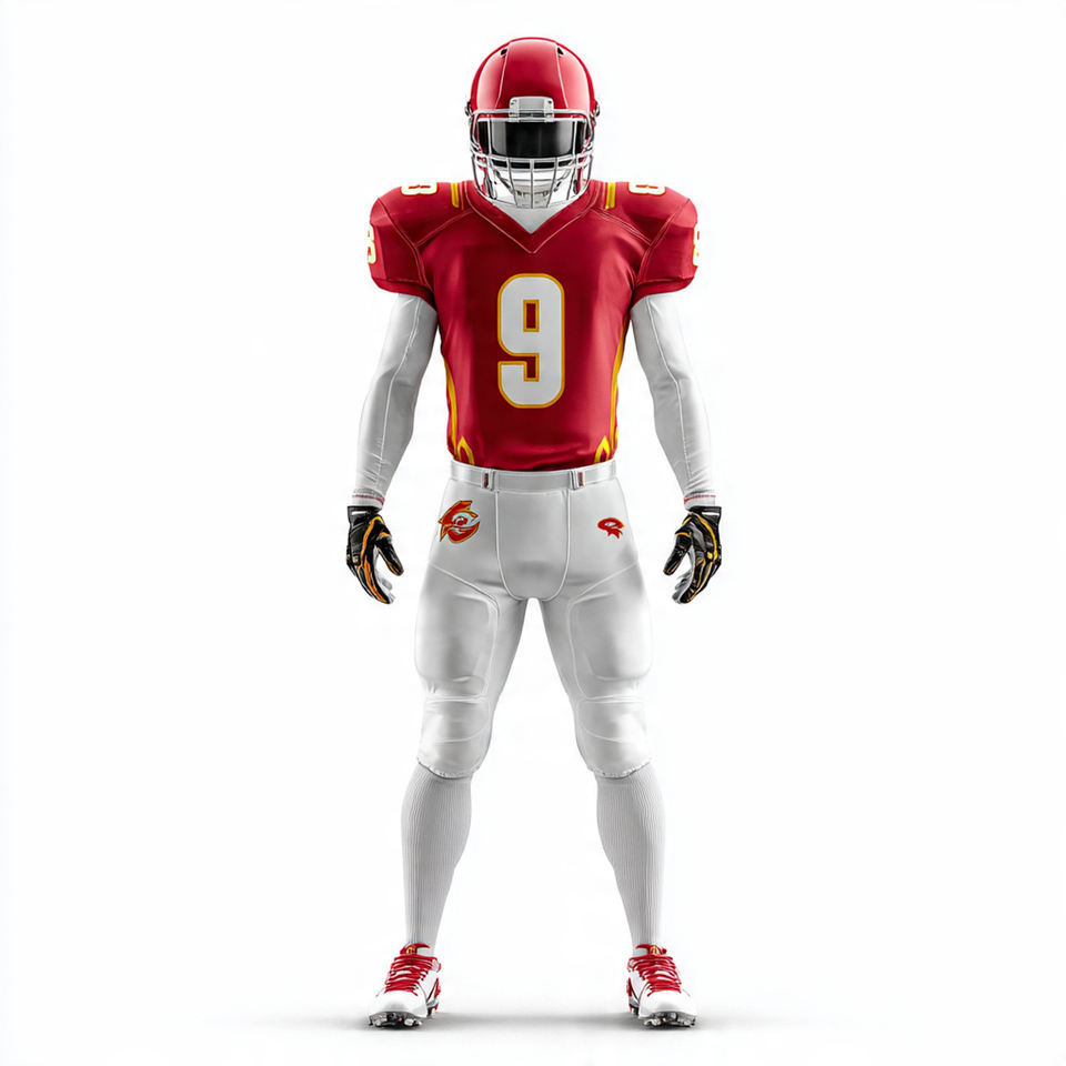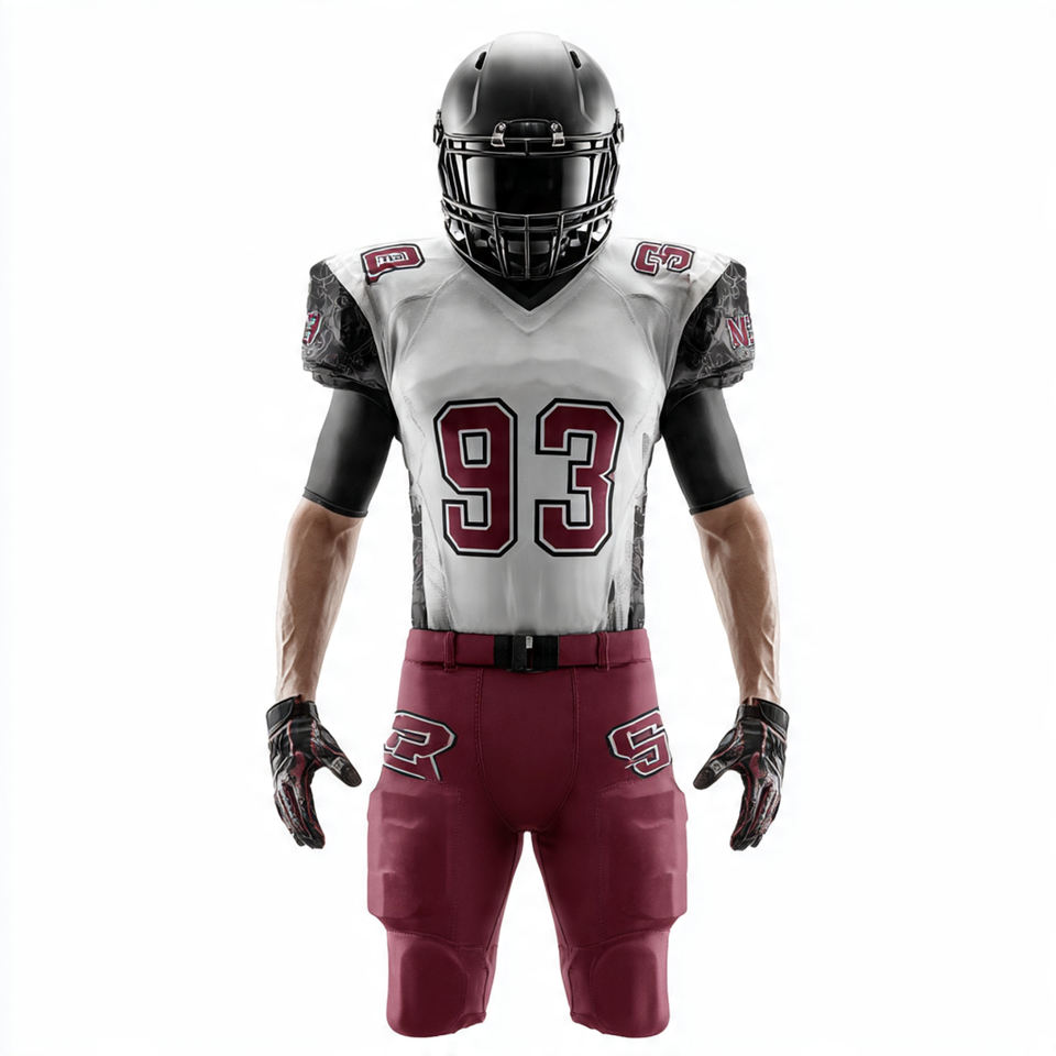 Personnalisation de l'uniforme de football américain, ensemble maillot et pantalon de football américain 100% polyester, numéros d'équipe, uniformes de football