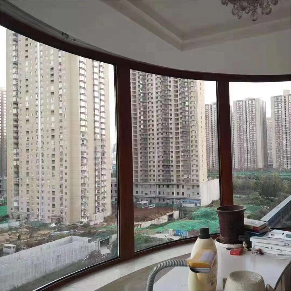 Personnalisation baie vitrée meilleure vente bon prix coin baie isolation thermique double vitrage fixe texturé fenêtre incurvée