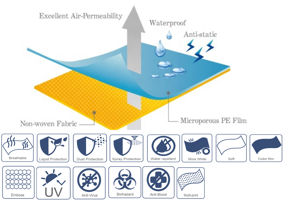 Drap de lit médical jetable en polyéthylène, personnalisé, film pe pp, membrane imperméable, tissu laminé, jetable