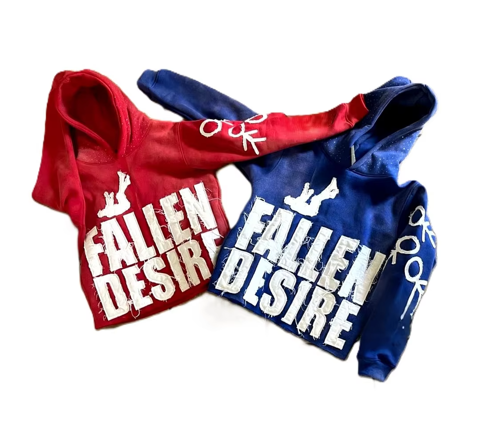 Hoodie personnalisé en coton, coupe courte, effet vieilli, avec appliques brodées, style vintage, coupe oversize, délavé soleil