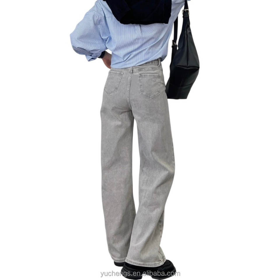 Customization Denim Jeans Wide Leg Streetwear Mid Waist High Quality Breathable Silver Retro Colors Women's Jeans