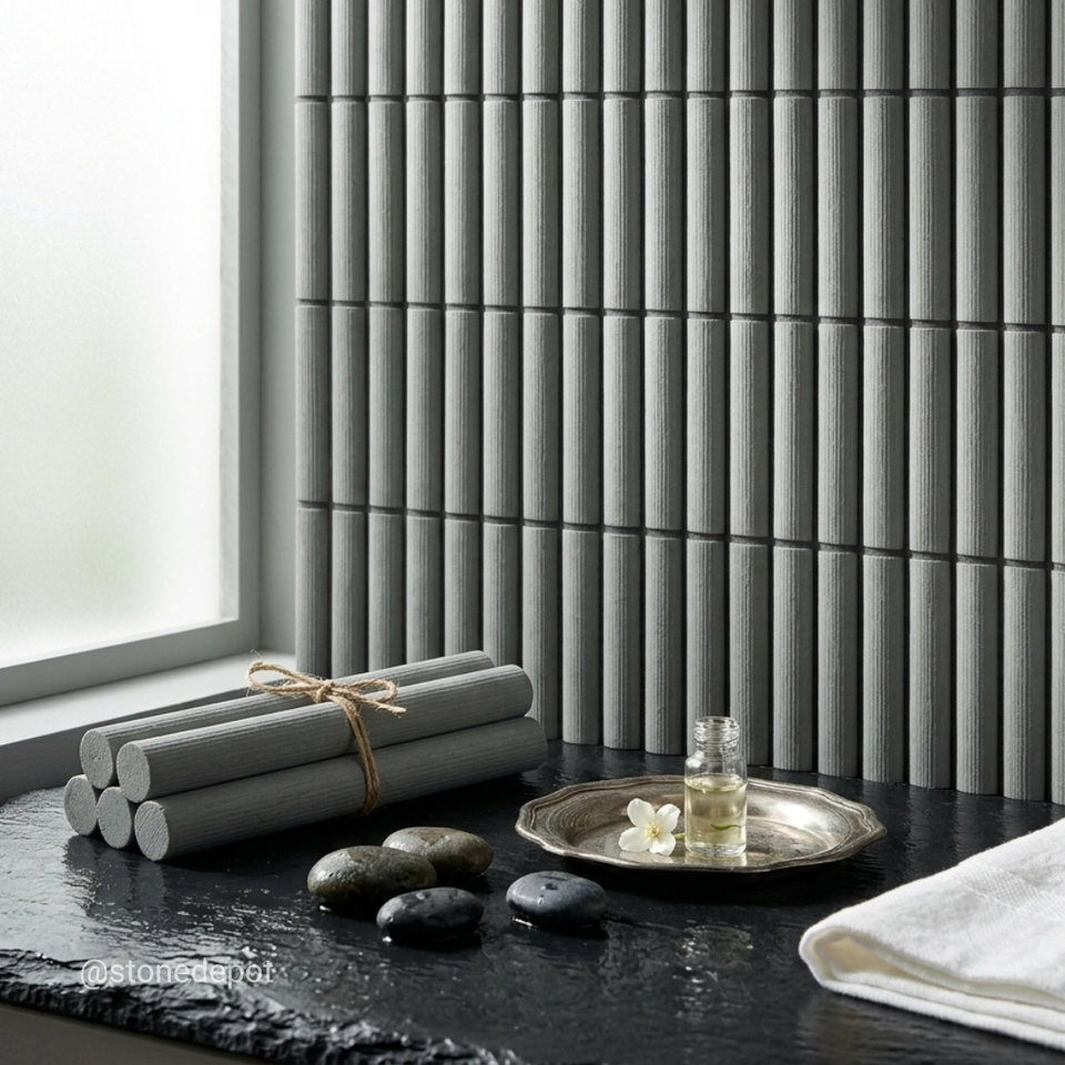 Fluted Ocean Wave Stone Mosaic