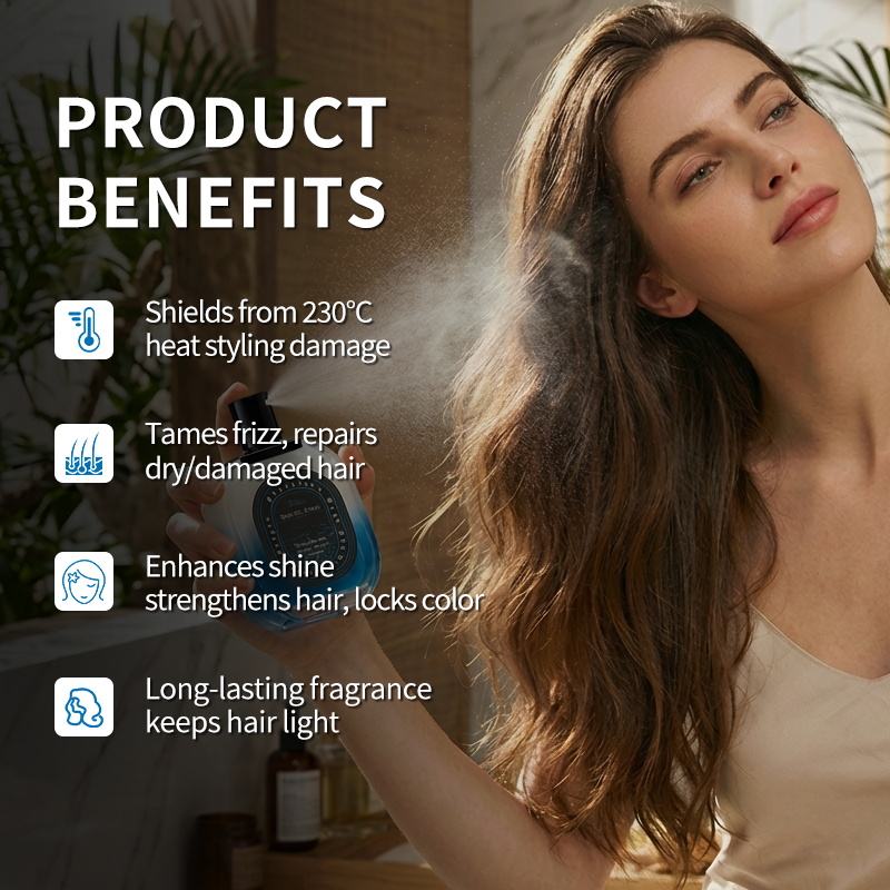 Nom du produit:Huile capillaire protectrice thermique parfumée de luxe en spray