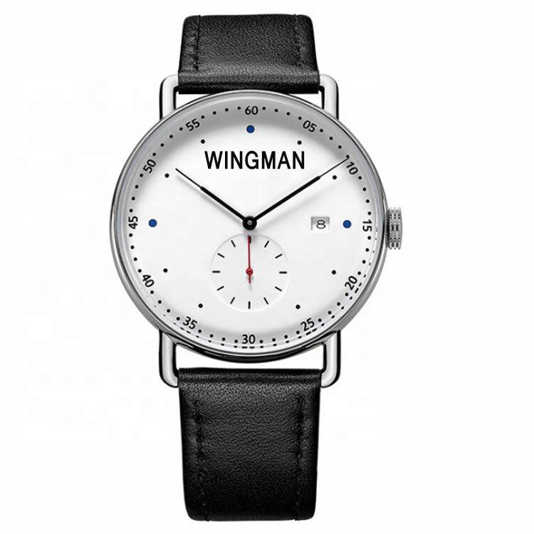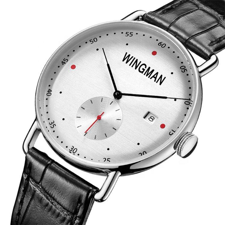 Montre pour homme de haute qualité personnalisable, boîtier en acier inoxydable poli, cadran en cristal saphir, mouvement automatique à quartz, bracelet en cuir