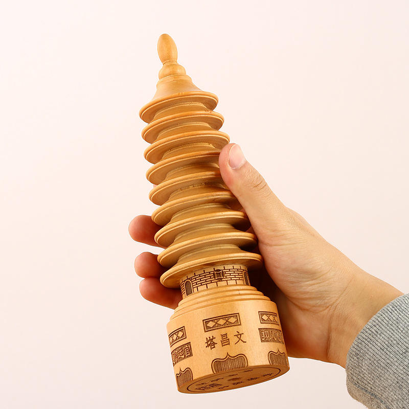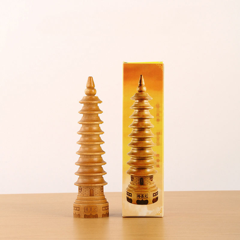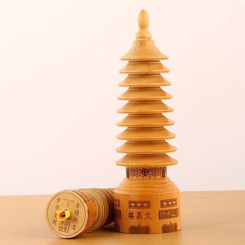 Tour de Wenchang en bois à 9 niveaux, personnalisable avec logo, en bois de pêcher, pour décoration de bureau