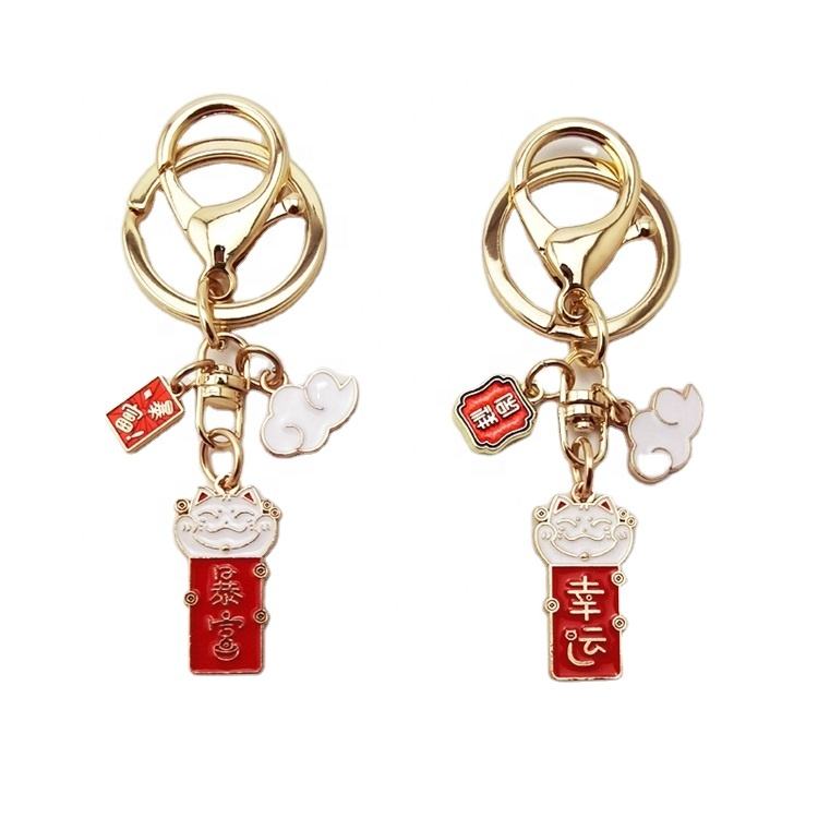 Porte-clés porte-bonheur personnalisé, joli chat porte-bonheur, émail doux, plaqué or, métal, cadeau pour ami