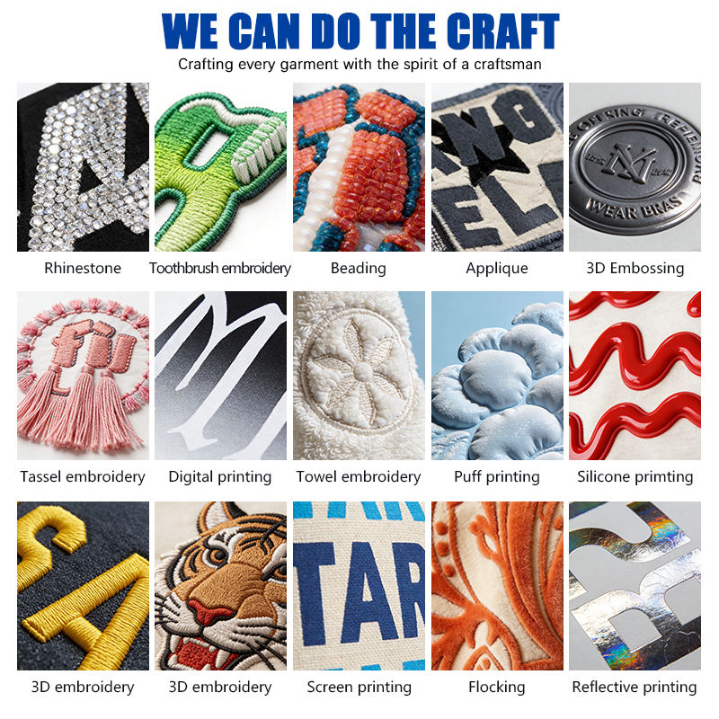 Brodé, Patchwork, Lavé, Imprimé, Perlé, Teint clair, Fils teints, Cravate teinte, Teinture à vêtement, Puff Imprimer, Bleach Wash, Flocage, Rinçage, Broderie 3D, Colorant d'immersion, Broderie de perles à ongles, Découpage automatisé, Imprimé Batik, Broderie machine, Aucun, Broderie flocage, Broderie à paillettes, Broderie en tissu apposée, Broderie de maching/broderie automatisée, Broderie à la main, Délavé, Lave aux enzyme, Lavage de sable, Laser Lavage, Whisker, PP pulvérisation/souffle de sable, Jacquard, Lavage acide, Strass, Broderie de serviette, Broderie chaîne, Application, Broderie unie, Broderie spangle