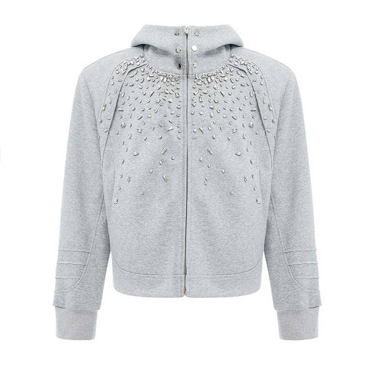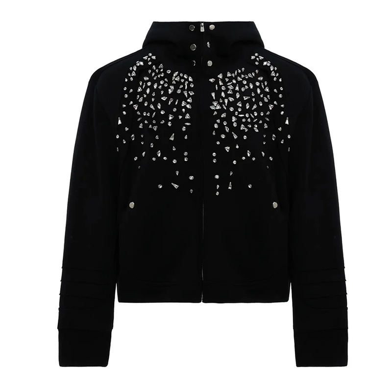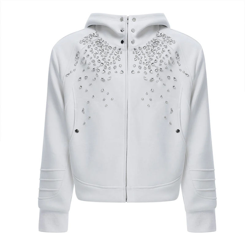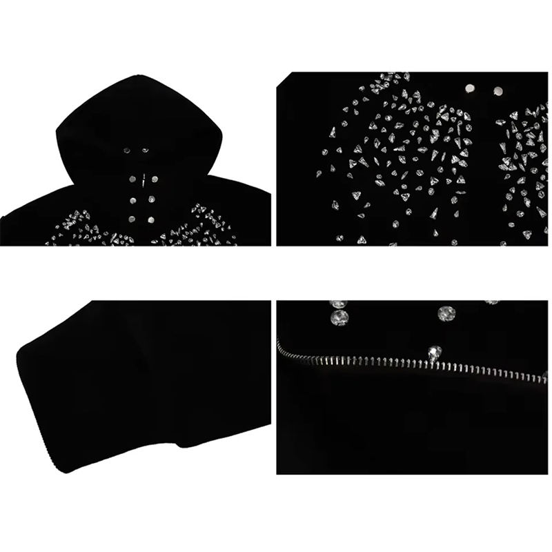 Sweat à capuche de luxe personnalisé pour homme, style streetwear, avec strass, fermeture éclair, en molleton épais