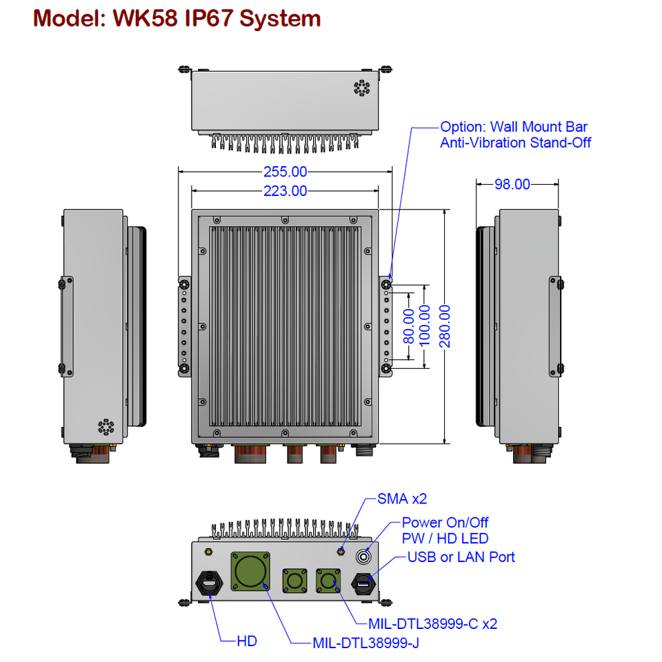 IP67 HD x1, USB 2.0 + USB 3.0 + LAN Max. 7 ports