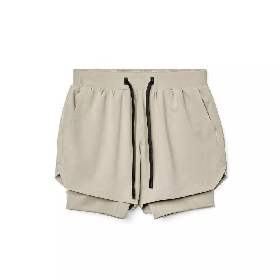 Shorts d'entraînement 2-en-1 personnalisables pour hommes, en toile écologique, séchage rapide, respirant, imperméable, motif uni, 100 % coton