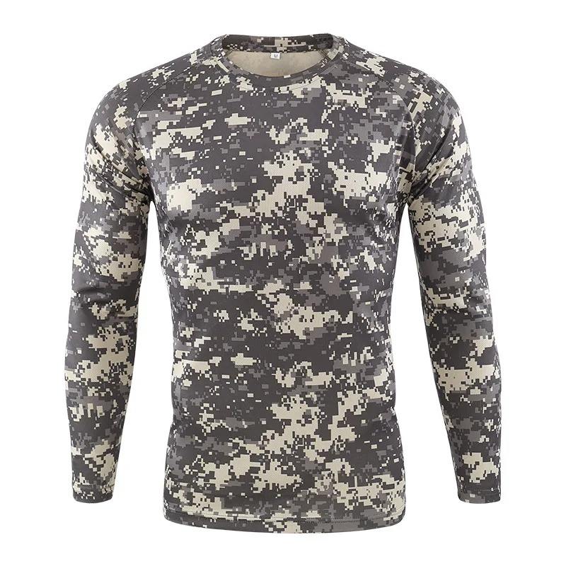 T-shirt à manches longues en tissu Pike respirant pour homme, col rond, camouflage, randonnée, chasse, entraînement, personnalisable