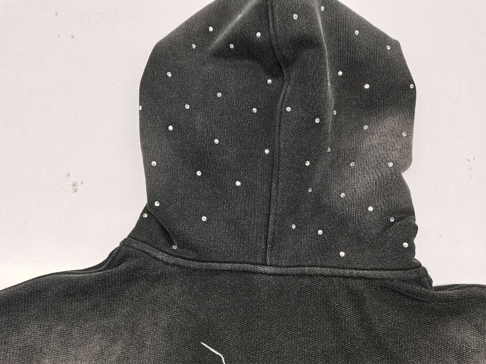 Sweat à capuche zippé court en molleton de coton pour homme, personnalisable, délavé à l'acide, avec broderie, appliqué, patch et strass
