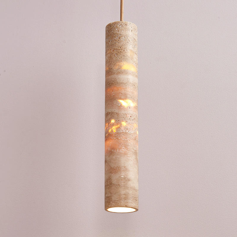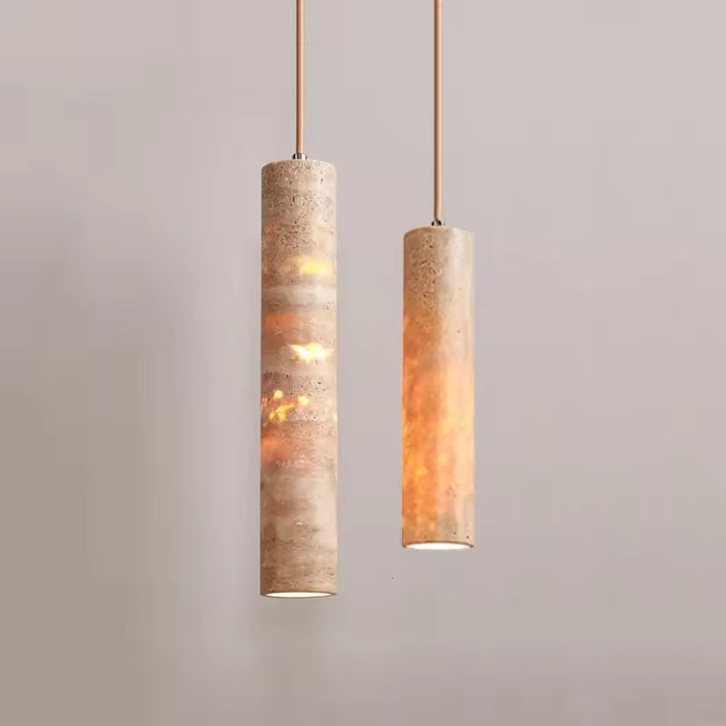 Lampe suspendue en marbre naturel jaune personnalisée, tube long, luminaire suspendu Wabi Sabi en travertin