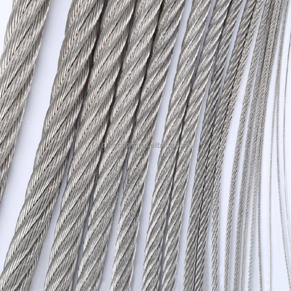 Câble en acier inoxydable personnalisable non magnétique 6x7+FC 7x7 AISI316 AISI304 SUS316 SUS304 A2 A4 Inox