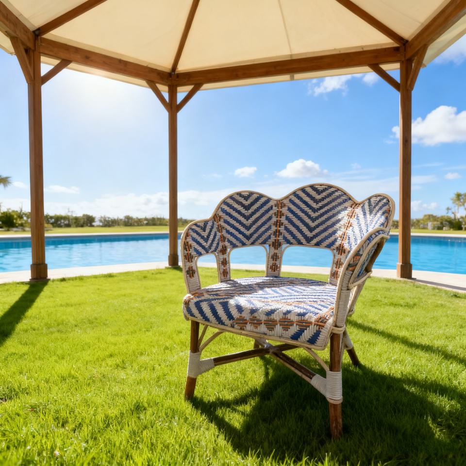 Fauteuil en rotin naturel de style parisien personnalisable avec tissage en rotin synthétique PE pour semi-extérieur