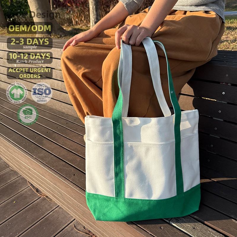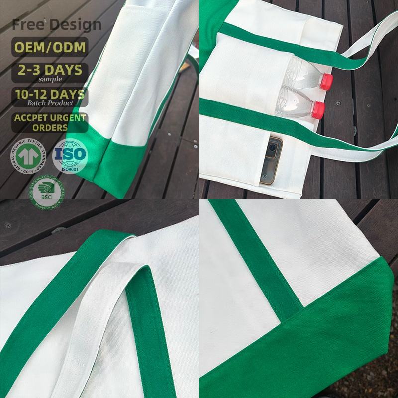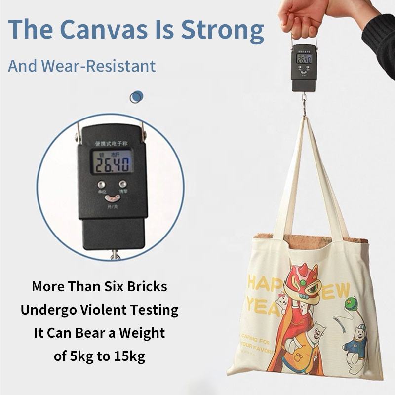 Services de personnalisation, sacs fourre-tout en toile de coton de haute qualité, réutilisables, de taille moyenne, avec poche latérale, longue impression