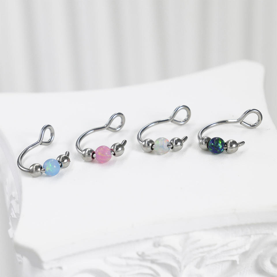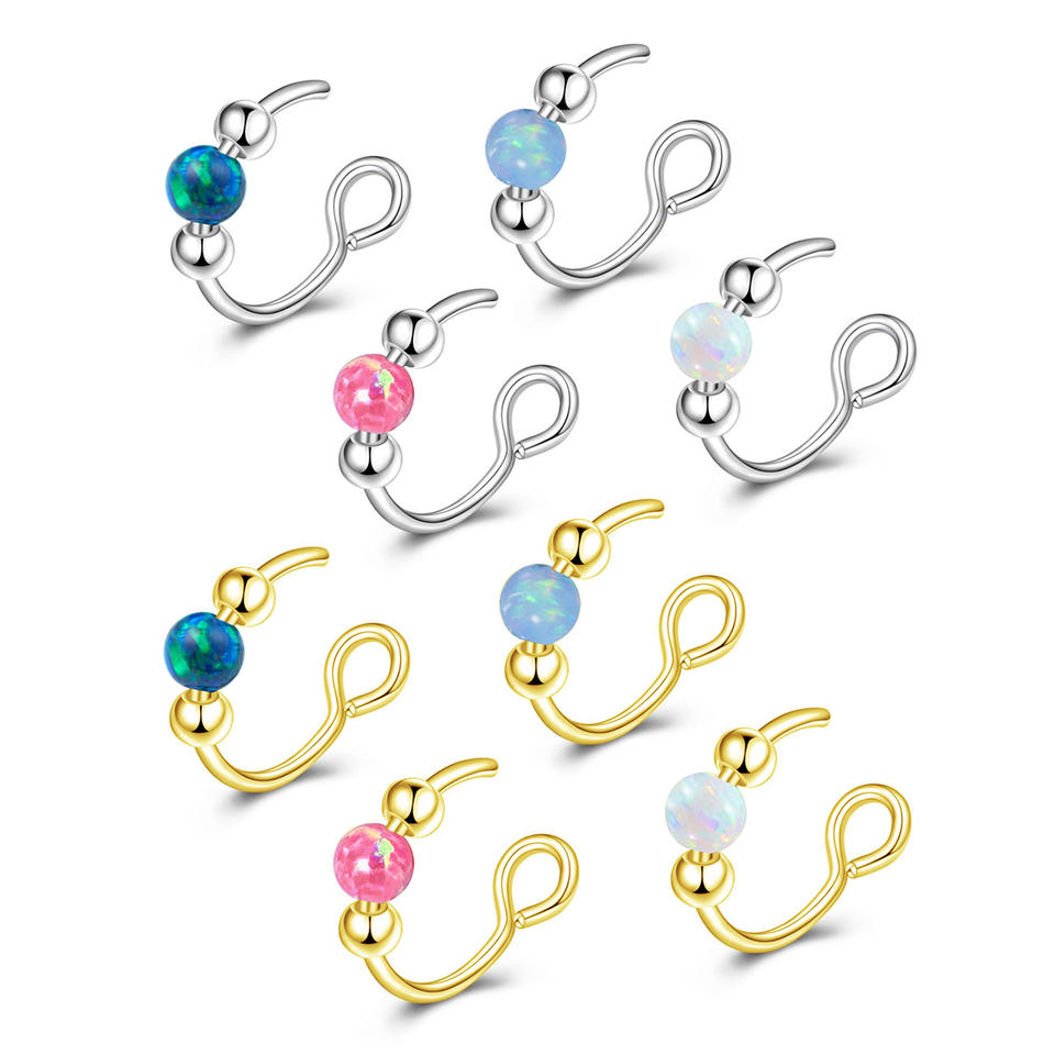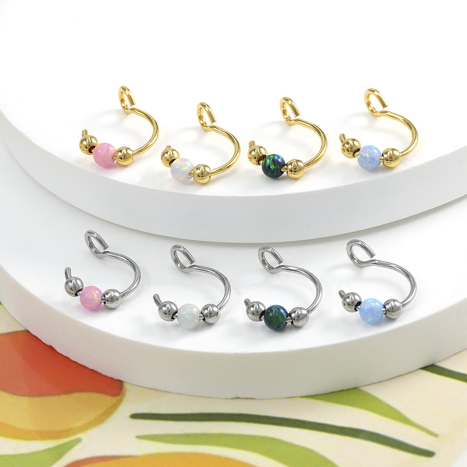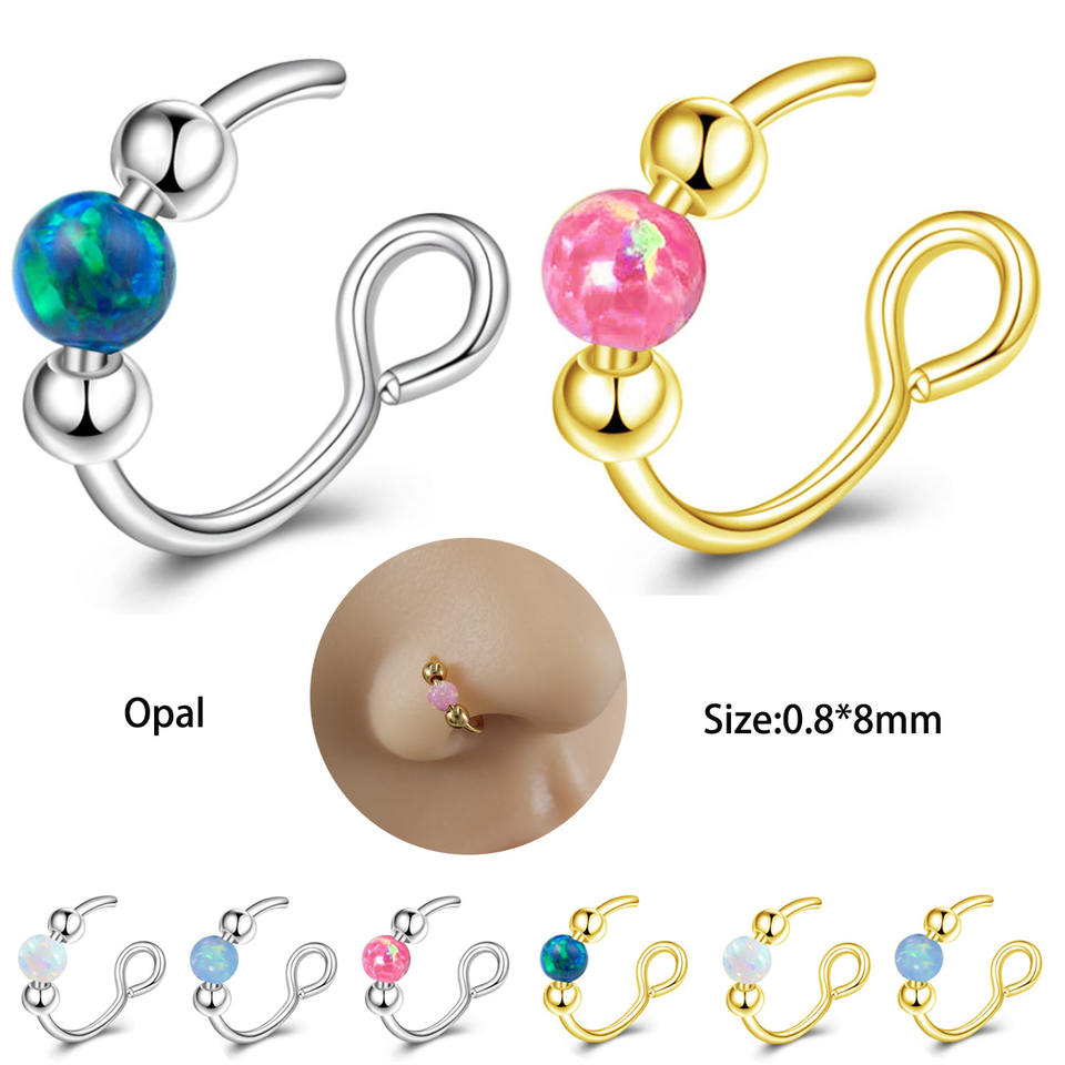 Anneau de nez en opale à tête obcuse en acier inoxydable personnalisable, anneau de lèvre sans perçage, faux clip d'oreille, bijoux pour femmes et hommes