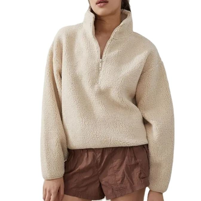 Personnalisation à partir d'un MOQ faible, sweat-shirt pour femme, fermeture éclair quart de tour, ample, poids lourd, tendance pour l'hiver et l'automne, vente en gros