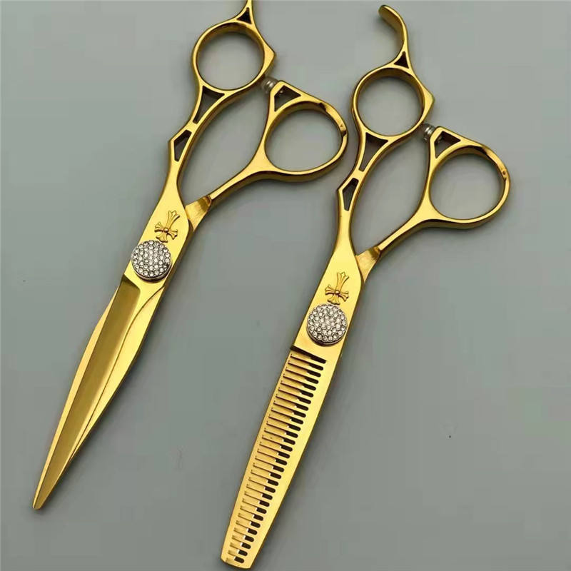 Ciseaux à cheveux dorés personnalisables de 6 pouces, ciseaux à effiler en acier inoxydable pour droitiers, outils de coiffure professionnels