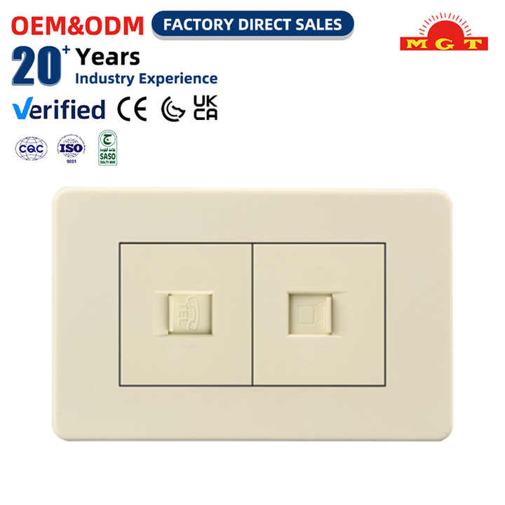 Prise murale encastrée double standard américain (USA) rectangulaire blanche avec prise de données TEL, personnalisation prise en charge