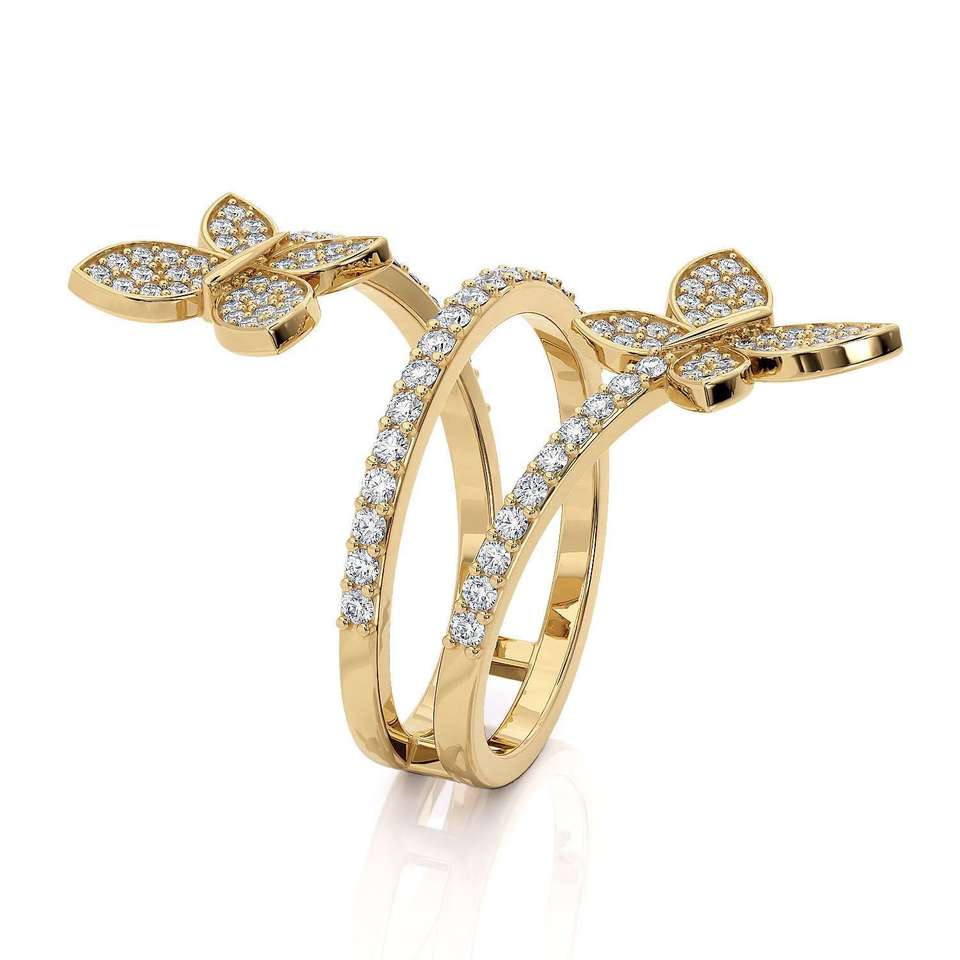 Bague ajustable personnalisable en or massif 14 carats avec papillons entrelacés, sertie de diamants de laboratoire pavés, double papillon, bijou de déclaration