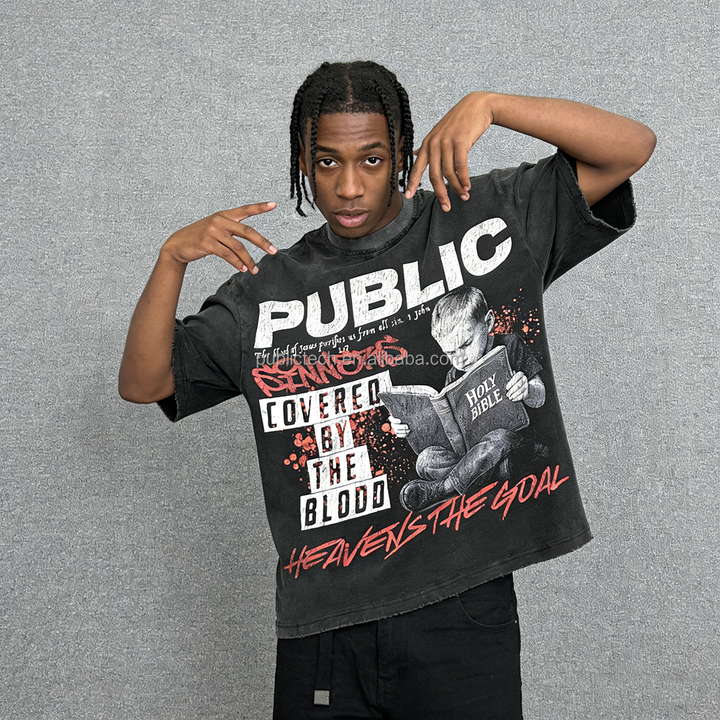 T-shirts personnalisés pour hommes, coupe ample, effet délavé, impression DTG, 100% coton, poids lourd, col rond, manches courtes