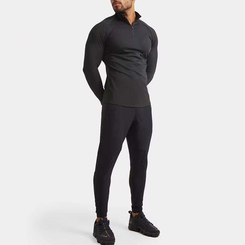 Vêtements de sport personnalisés T-shirt à manches longues et col entonnoir, léger, musclé, coupe ajustée, haut zippé, 1/4