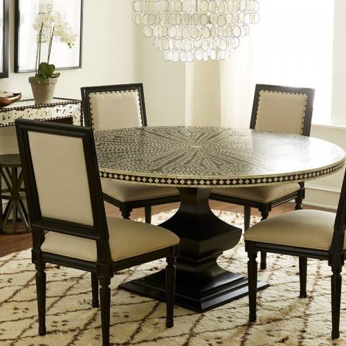 Customize Bone Inlay Targua Design Dining Table Home Furniture Extendable Round Shape Bone Resin Material Living Room Hotel Use