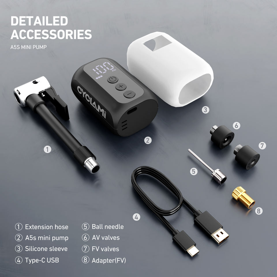 Pompe à air électrique de poche portable A5S personnalisable, mini compresseur haute pression 100 PSI, gonfleur de pneus avec affichage des données