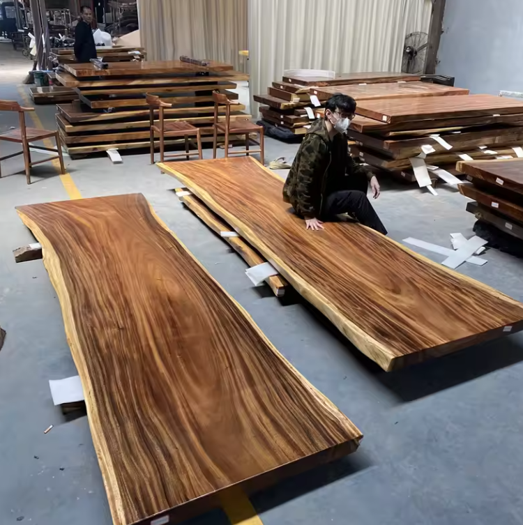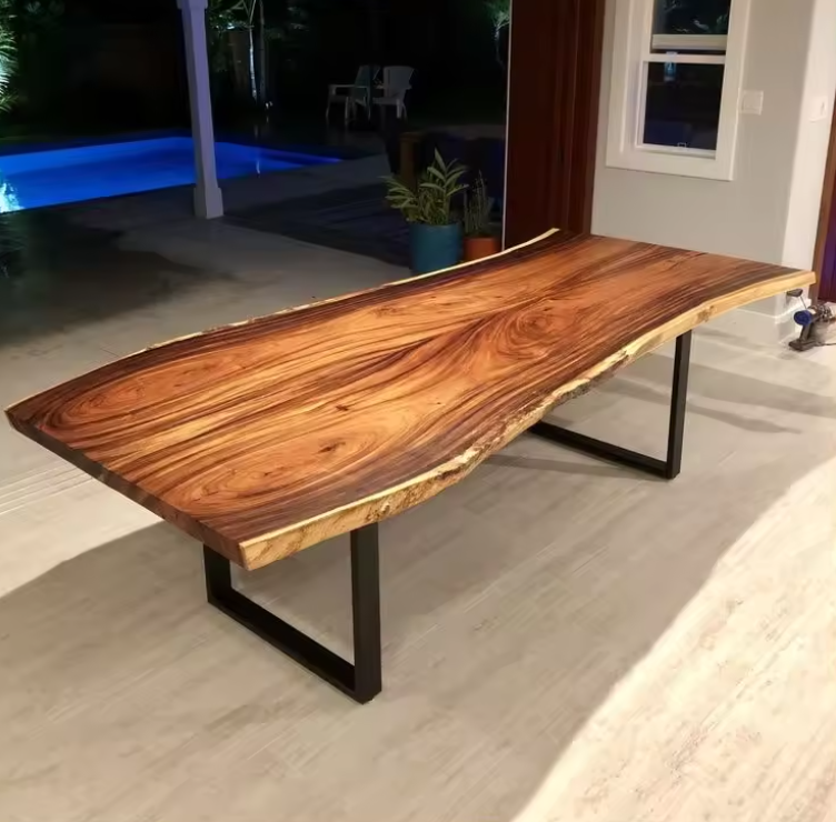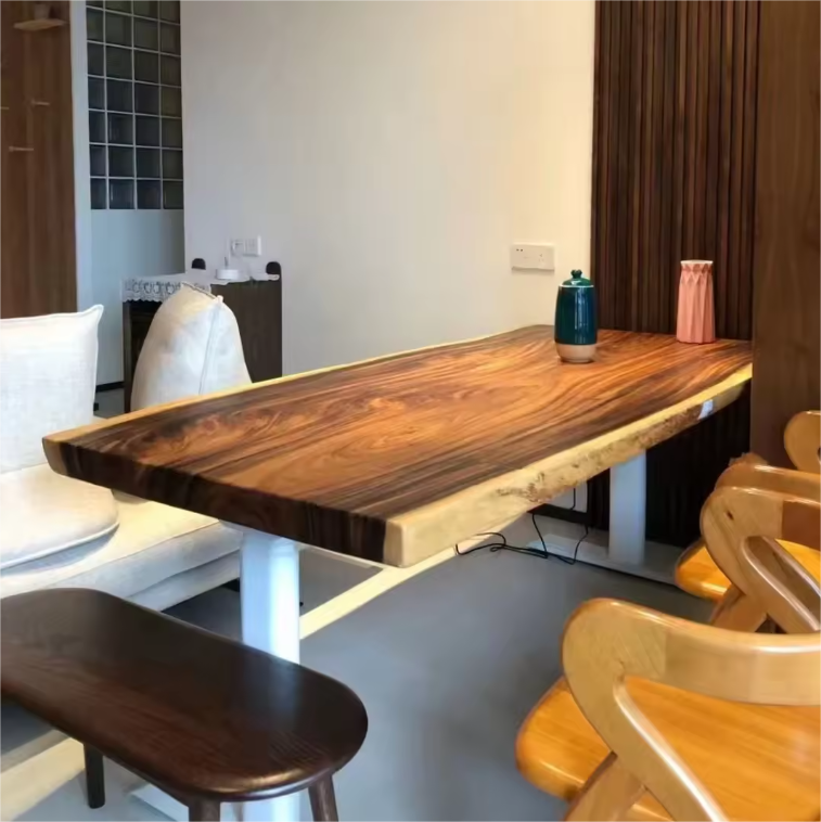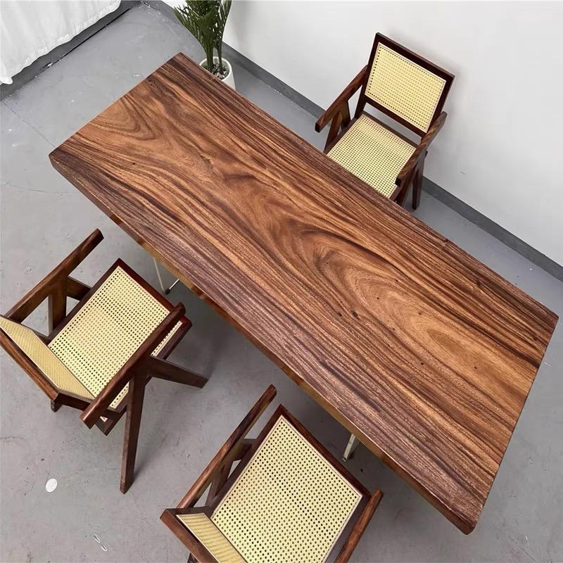 Table de salle à manger de restaurant en bois de noyer massif à bord brut, personnalisable, prix abordable, mobilier de cuisine quatre places