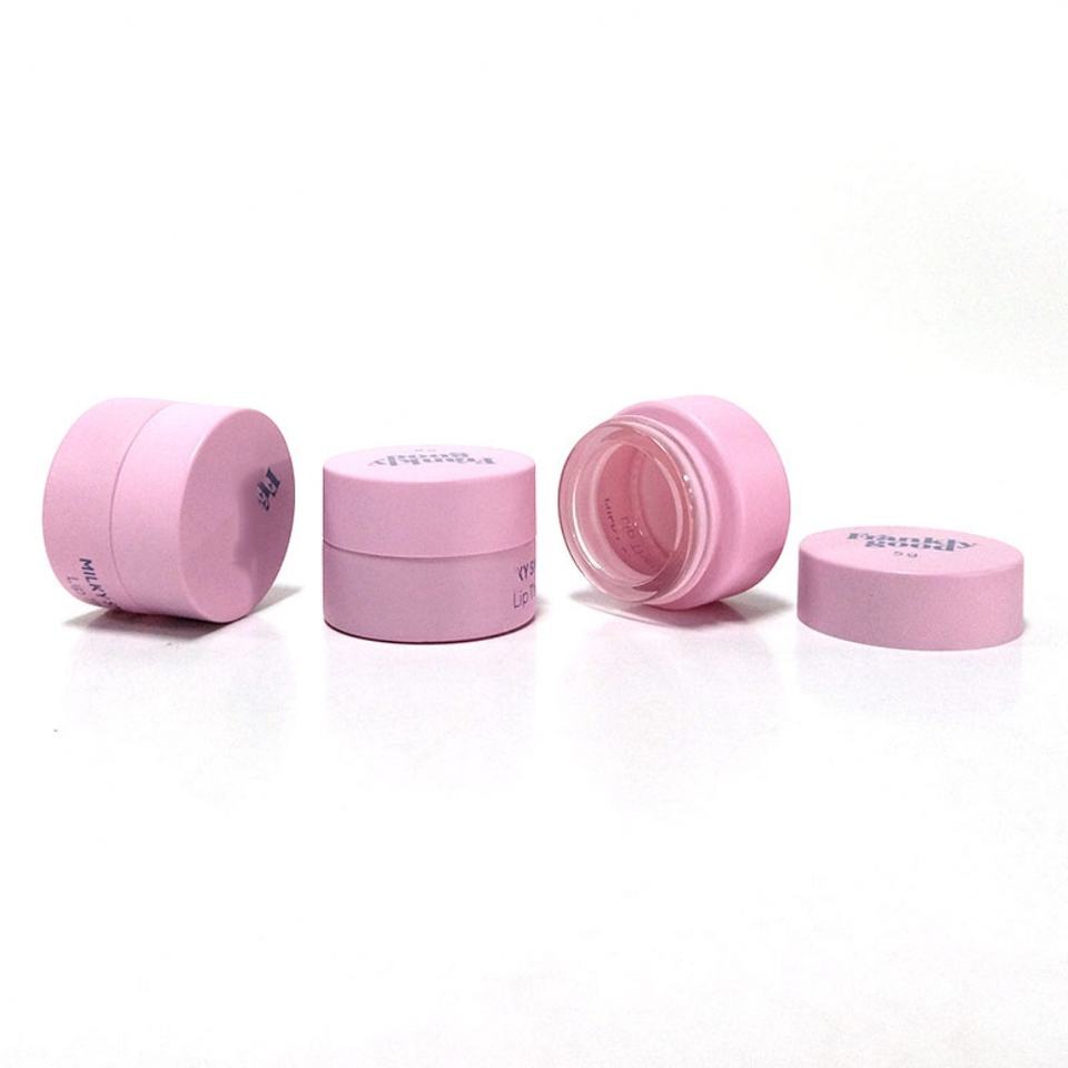 Pot en verre cosmétique personnalisé 10g/5g givré avec capuchon en plastique rose pour baume à lèvres, crème et lotion pour le soin de la peau
