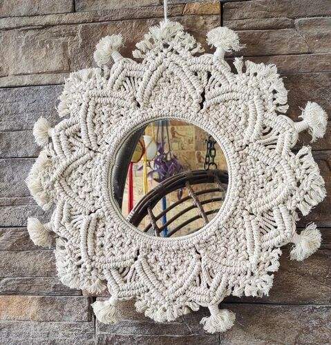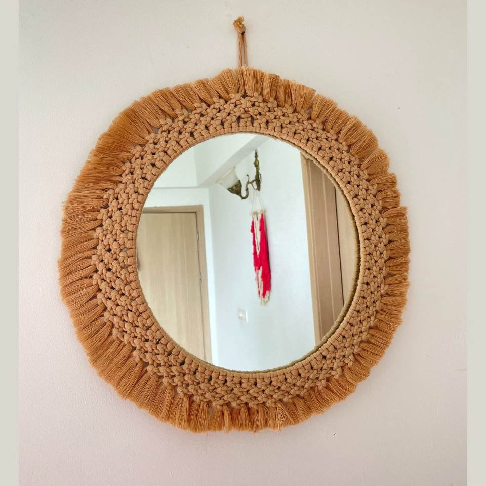 Miroir mural en macramé au design personnalisé, miroir en macramé fait à la main, auto-adhésif pour la décoration de la maison et du bureau, très demandé