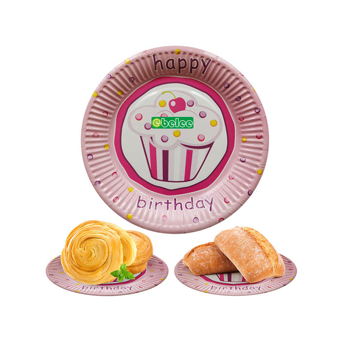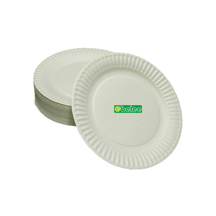 Vaisselle en papier jetable personnalisée assiette en papier de fête plat rond papier de qualité alimentaire 300g carton blanc toutes saisons 7 "-9"