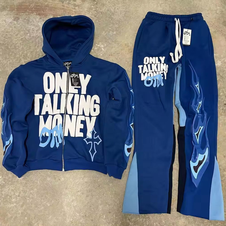 Combinaison de survêtement personnalisée avec applique brodée délavée à l'acide combinaison de survêtement unisexe à fermeture éclair avec impression bouffante combinaison de survêtement pour hommes