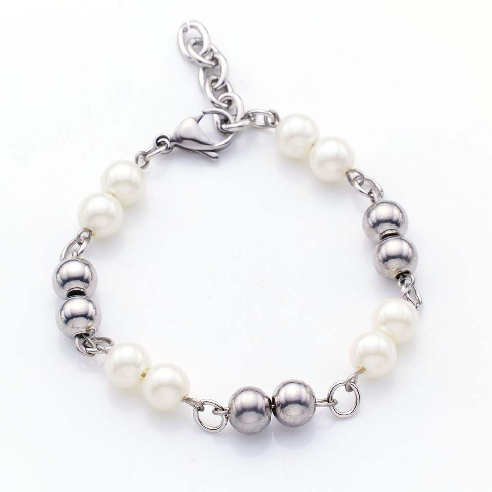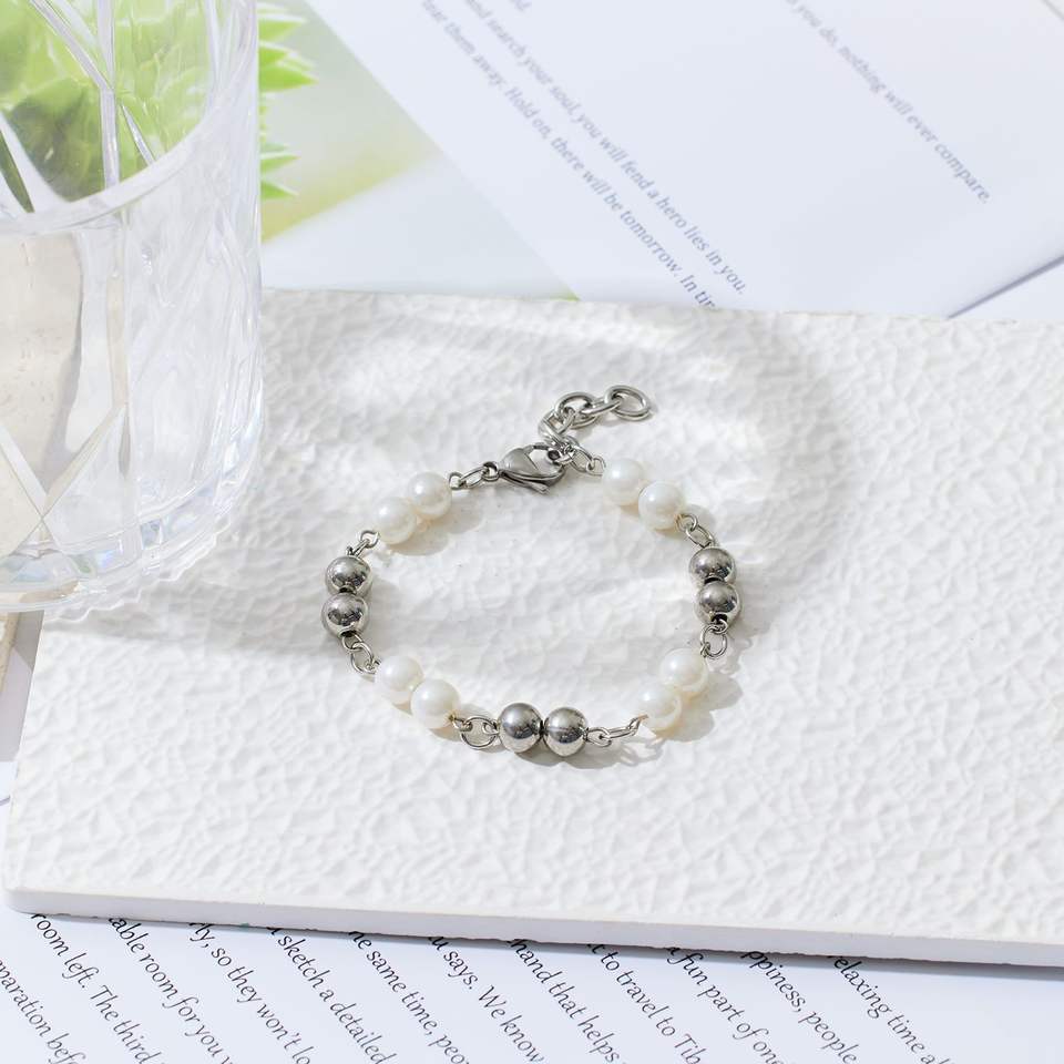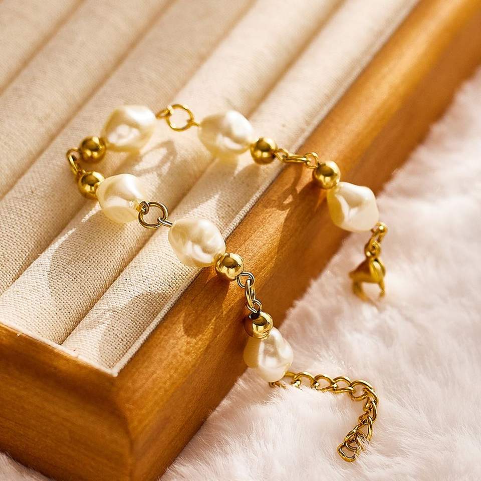 Bracelet en acier inoxydable plaqué or 18 carats avec perle, personnalisable, non étanche, pour cadeau