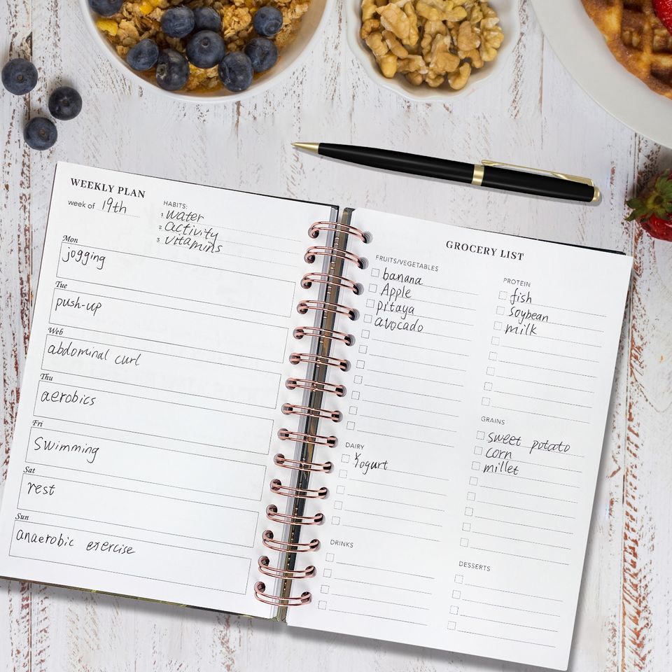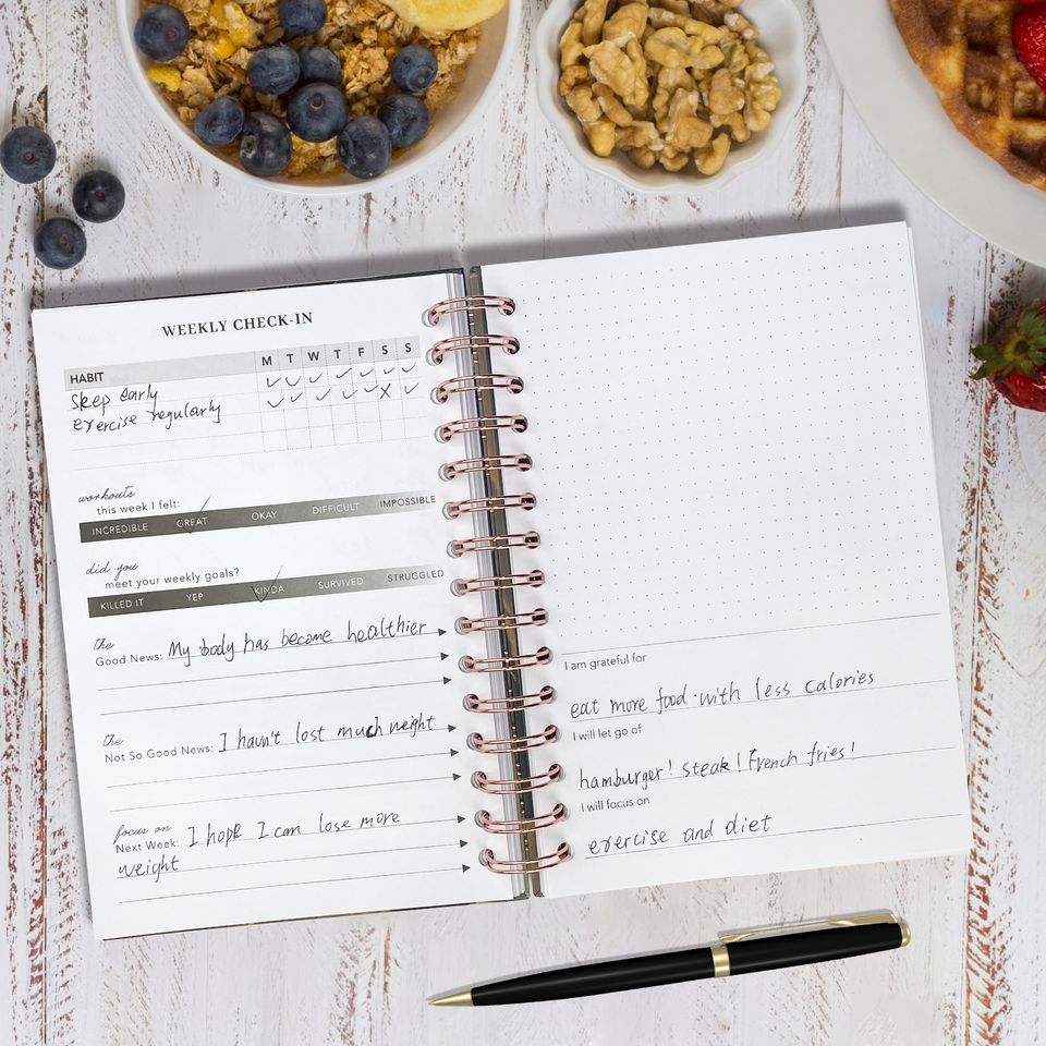 Agenda en cuir pour journal intime, agenda en métal, suivi de la perte de poids, carnet de notes avec calendrier, 9 pièces