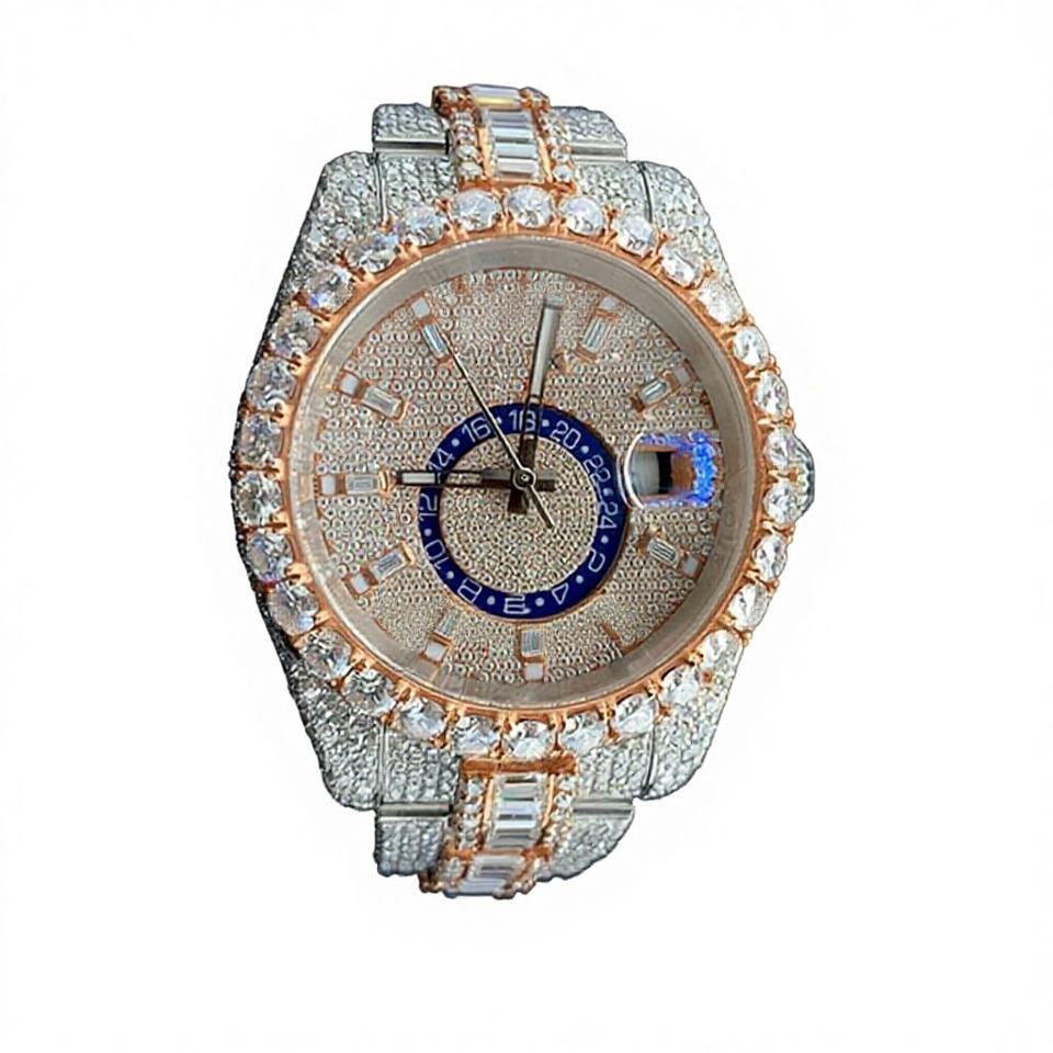 Montre de luxe Hip Hop personnalisable, entièrement sertie de pierres VVS, en acier inoxydable, cadran rond en verre de 5 mm d'épaisseur, mouvement à quartz analogique, date automatique, style antique