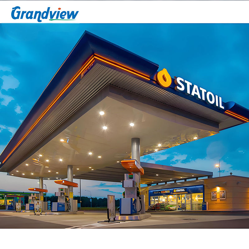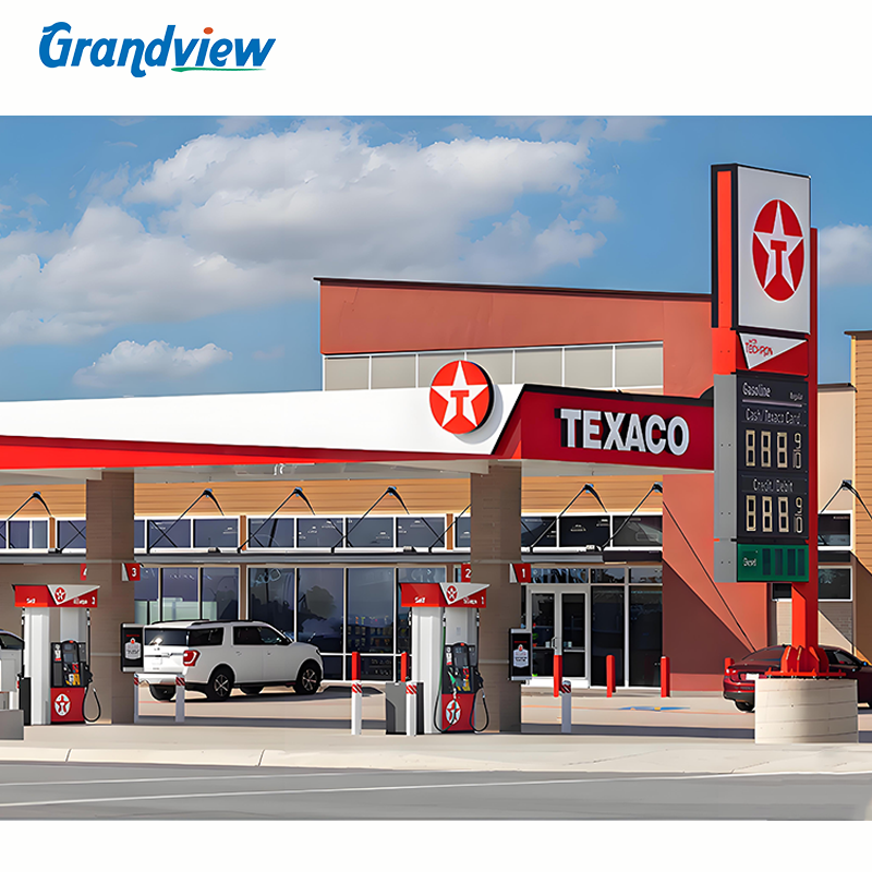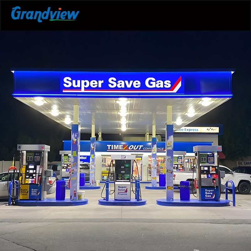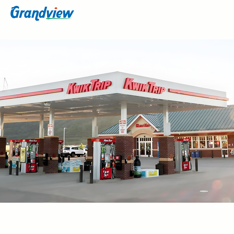 Structure de toit en acier inoxydable personnalisable pour station-service, panneau publicitaire extérieur pour station-service ou station d'essence