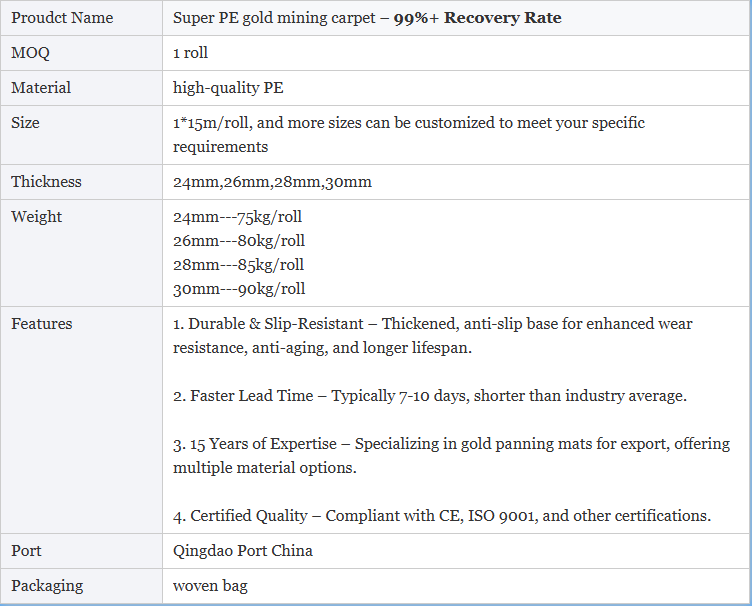 Nom du produit:Tapis de récupération d'or en PE imitation gazon pour la prospection aurifère