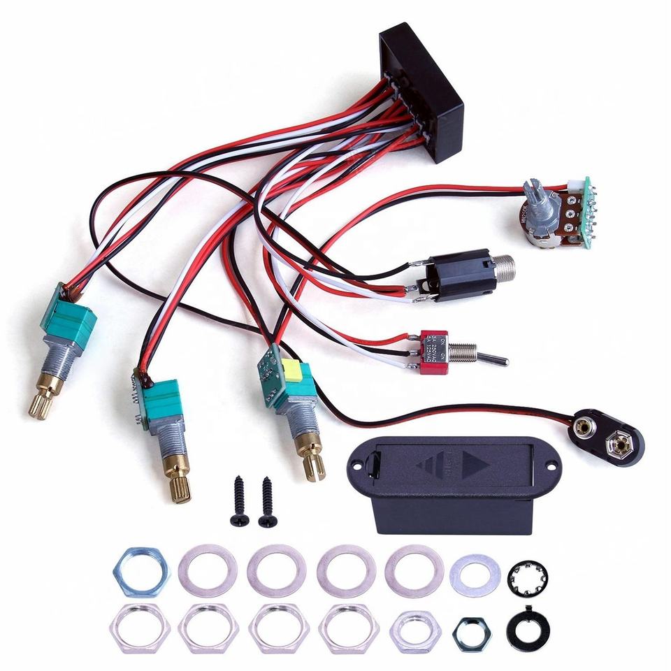 Faisceau de Câblage Préampli Actif de Guitare Basse Électrique 4 Bandes EQ de Haute Qualité Personnalisable pour Basse