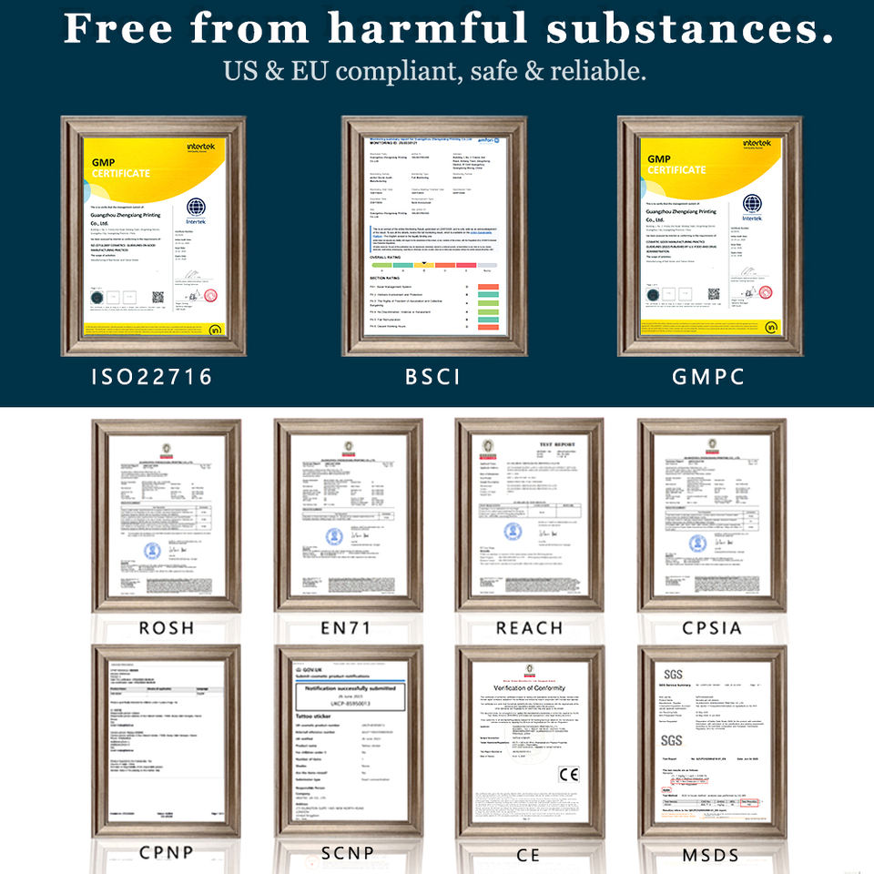 Factory Certification:GMPC/ISO22716/BSCI/EU/US/AU Certification