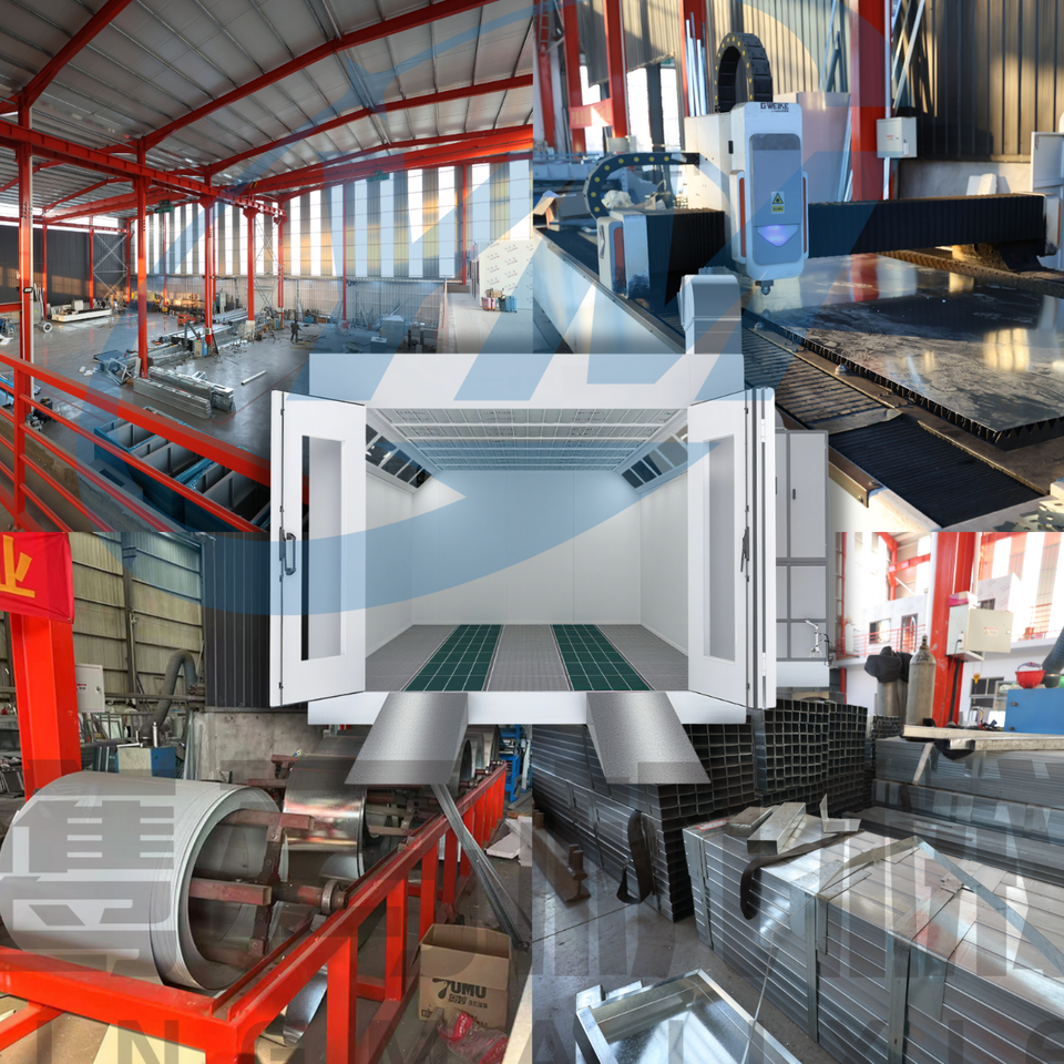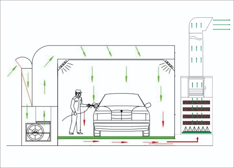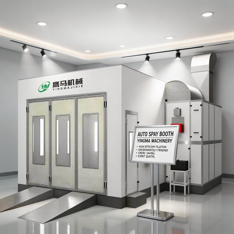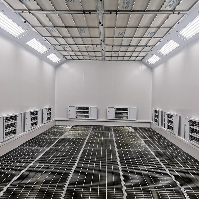 Cabine de peinture automobile à aspiration descendante entièrement éclairée par LED, dimensions intérieures personnalisables 8,5m x 4,2m x 2,8m, pour usage en garage