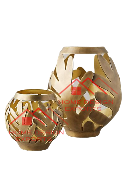Customize Leaf Design Golden Finished Metal Candle Holder with Glass Votive at Wholesale Rate Candle Votive