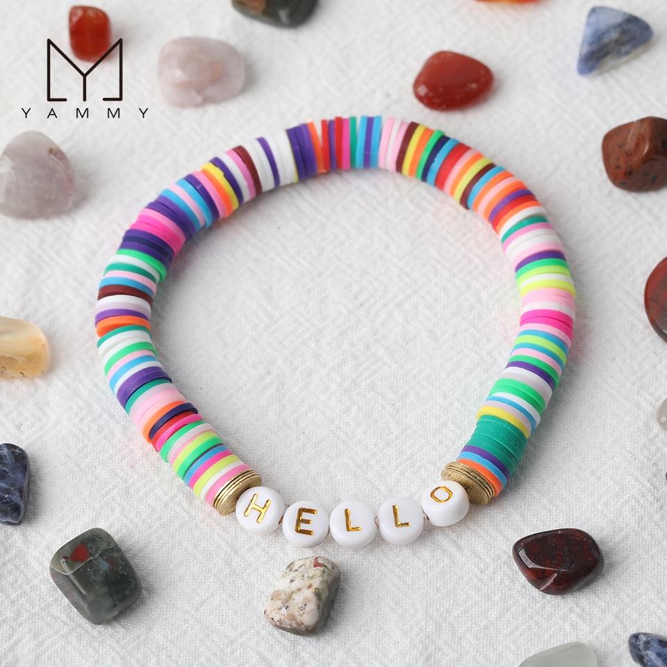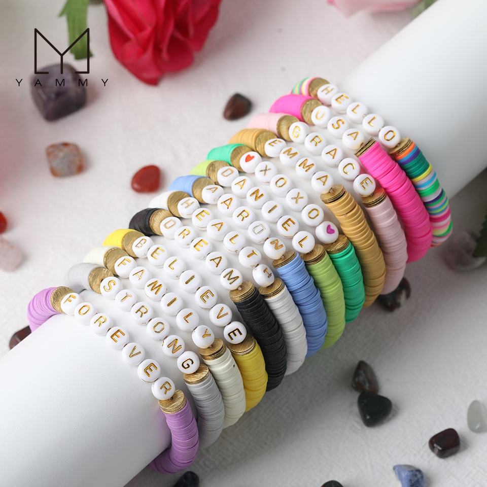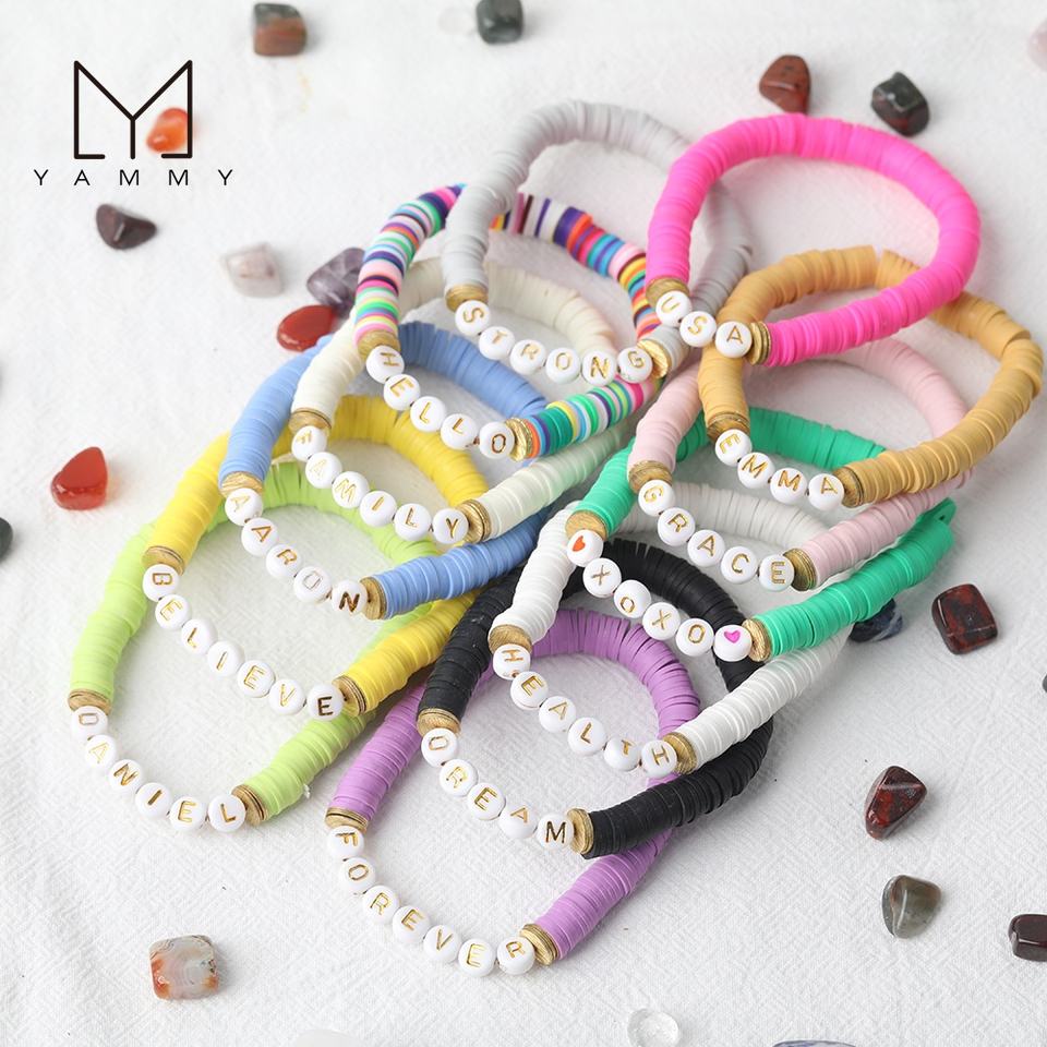Bracelet en perles d'argile polymère fait à la main avec nom de lettre personnalisé, bracelets d'amitié Boho Heishi Taylor
