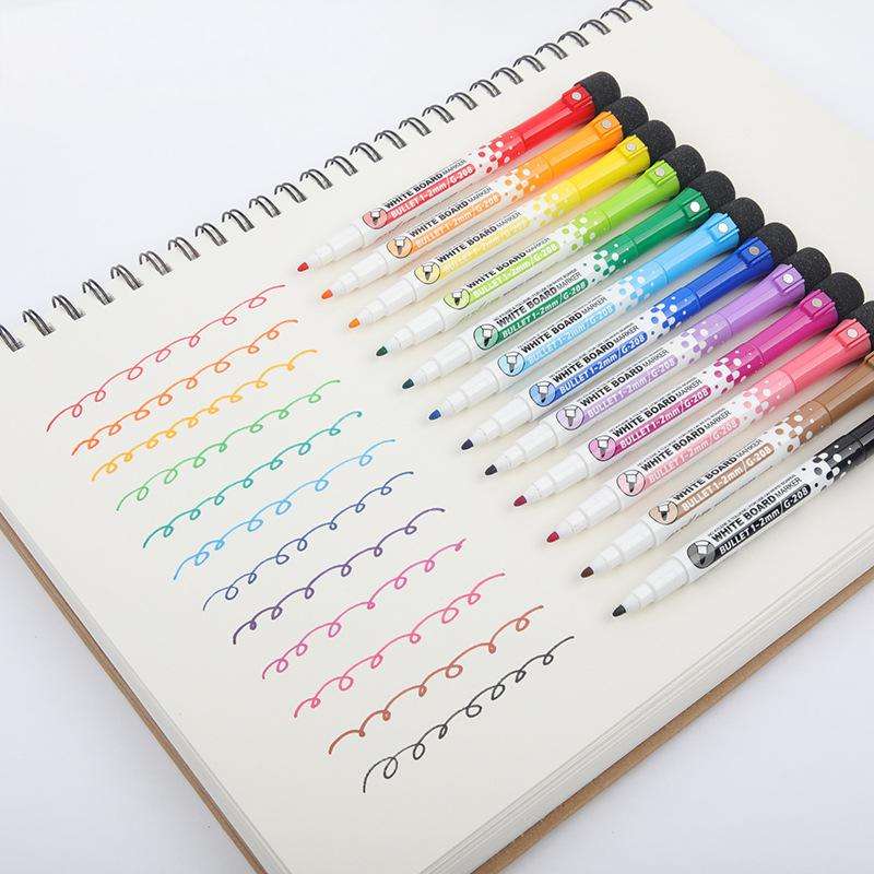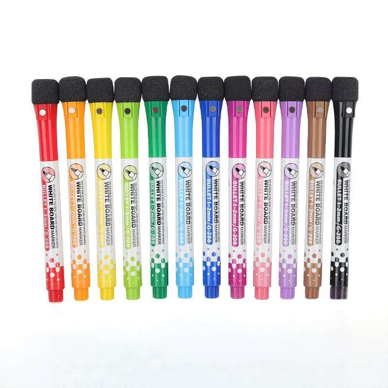 Ensemble de marqueurs effaçables à sec à pointe feutre personnalisables avec logo, faible odeur, colorés, magnétiques, pour tableau blanc, avec aimant et gomme