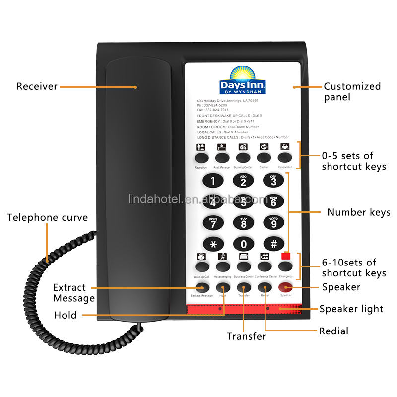 Nom du produit:téléphone d'hôtel / téléphone de chambre / téléphone de hall / téléphone de salle de bain