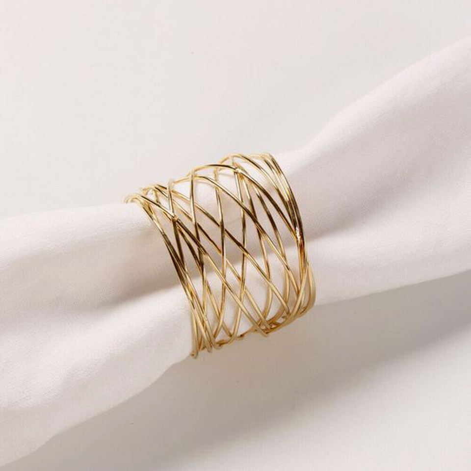 Anneaux de serviette de table design fils métalliques dorés logo personnalisé Rond de serviette de table de Noël design métal